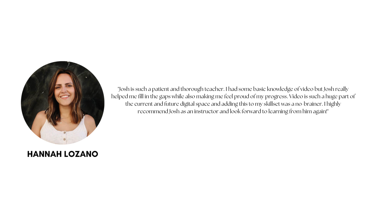 Through a burst of stubbornness, child-like hope, and naiveté, I decided I would use those words as fuel to make my dreams a reality. I would eventually take the leap to drop out of business school and pursue my passion for video full time. In the matter of a year, filmmaking went from being a hobby, to a full blown career. Fast forward 8 years, and I am doing what I love every day and getting to help couples, and creatives tell their story through video. I've directed TV shows, produced educational series for other creatives, and told the love stories of countless couples. None of this would have ever been possible if that feisty 17 year old boy didn't take a shot at making it happen. Everything that I have learned about making videos, and the strategy behind how to monetize them has been earned through nearly a decade of trial and error. This is why I am so passionate about condensing the knowledge I have and distilling it down into an easy to understand and accessible way. My hope is to take years off of your learning curve so that you can start creating incredible video content without all the headache of figuring it out yourself like I did.