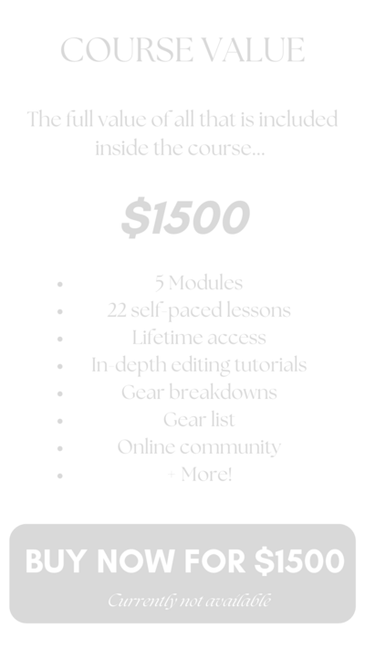 While buying dedicated video gear can improve your videos, we understand not everyone will have the budget to immediately buy gear. Because of this we have structured the course in a way that you can start with as little as an iPhone and a free editing app like iMovie, or you can use a more professional camera and editor.
